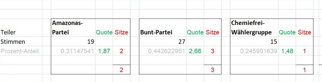 Nach der Auszählung berechnete sich die Sitzaufteilung wie folgt.