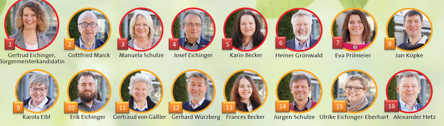 Zum Schluss noch eine kleine Übersicht über die Kandidaten zum Gemeinderat, Kreistag, 1. Bürgermeisterin von Finsing und Kandidaten als Landrat, unterstützt von Grünen, SPD und Freie Wähler.